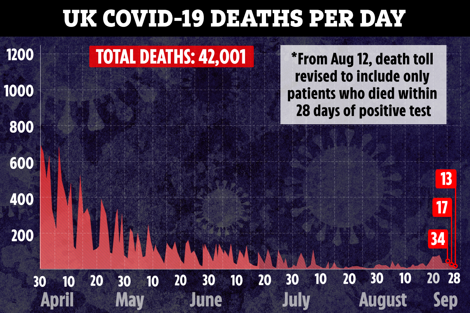 Overall in the UK, 158 deaths were registered in the week ending September 18 involving Covid-19 – 48 deaths higher than the previous week.
